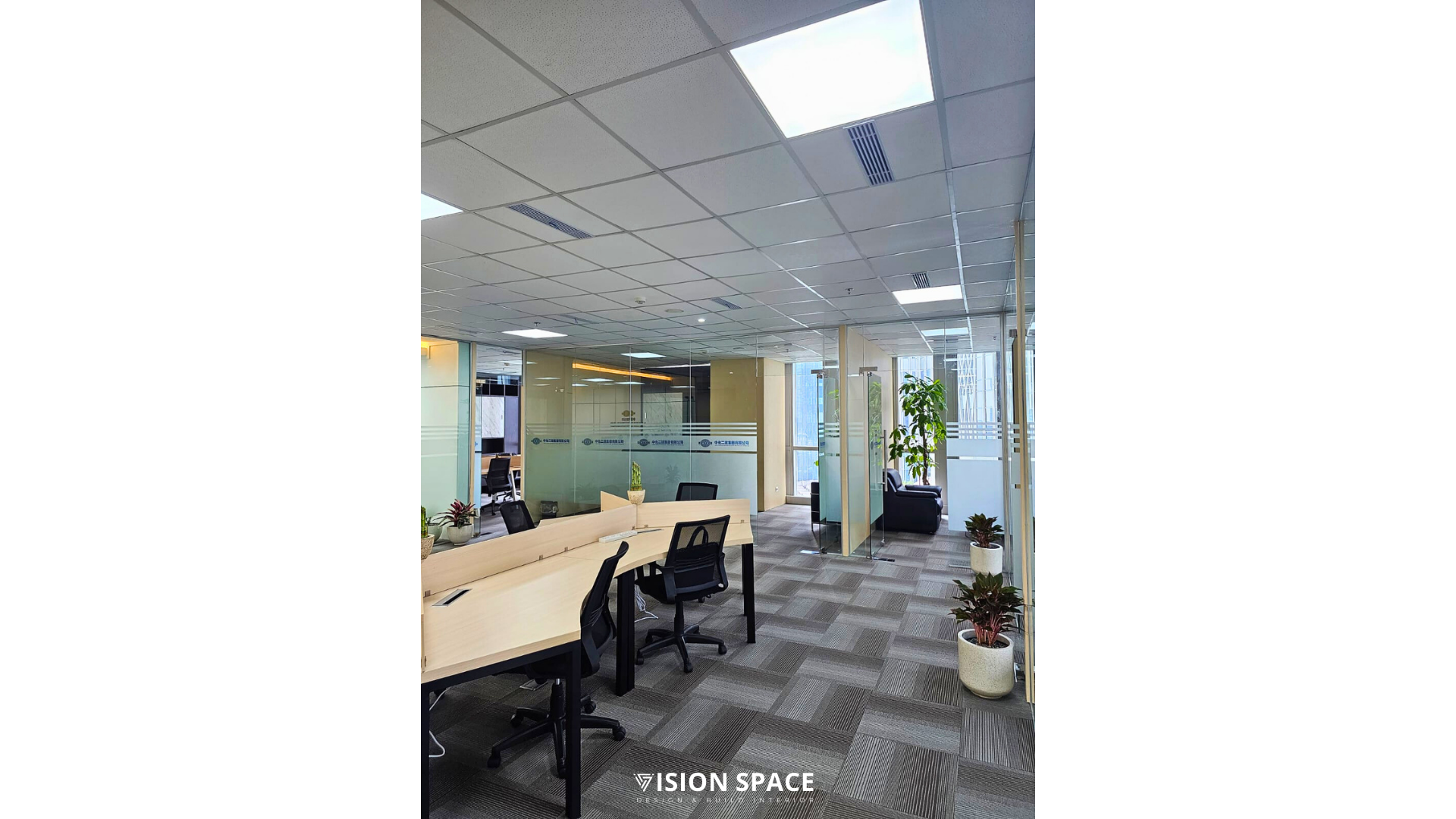 In this project, the space is optimized using glass partitions, which provide a modern and elegant look. With its clean and minimalist design, glass enhances the space without making it feel cramped.